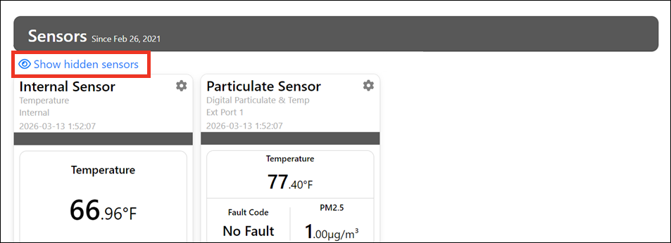 In order to hide or unhide a sensor, you must log in as an Administrator or Operator. For more information, please see the “Types of user roles” section of our FAQ, How To Manage User Access To Your RoomAlert.com Account.