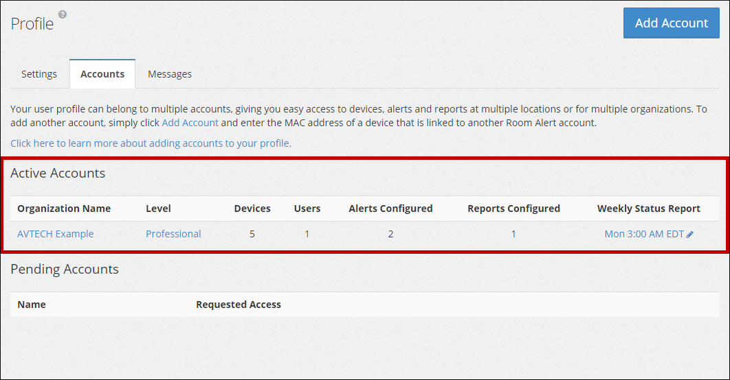 4. Here, you’ll find a list of all the accounts you’re currently assigned to, as well as a list of any accounts you’re pending access for.