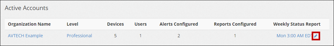 5. To make changes to a report, select the edit icon under Weekly Status Report.