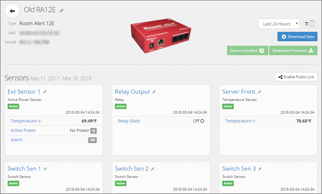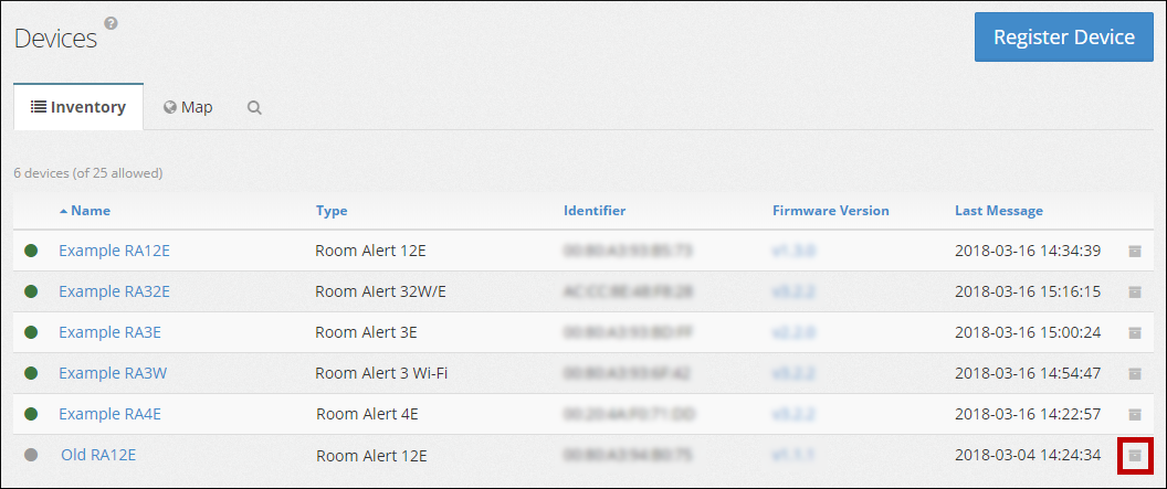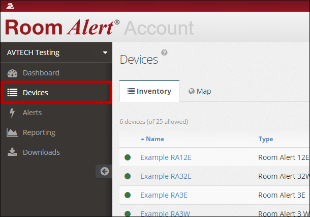 3. In Inventory, you’ll see a list of the Room Alert Monitors registered to your account.