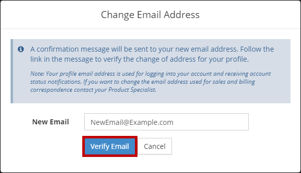 6. In the Change Email Address dialog box that appears, enter your new email address and select Verify Email.