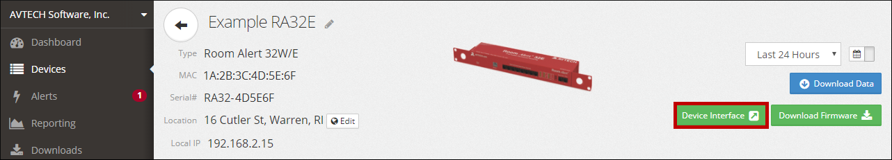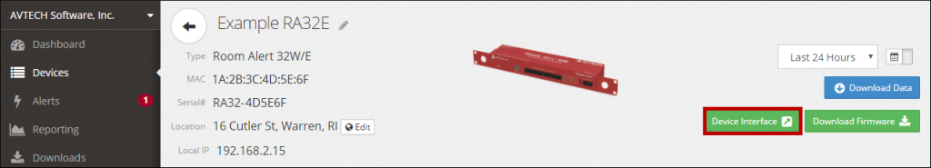 4. When your unit’s Sensor Details page opens, select Device Interface in the upper right corner.
