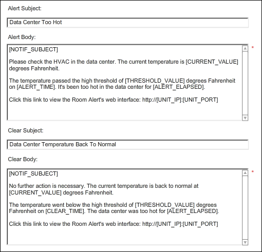 If you wish, you may customize the subject line and body of Device ManageR’s alert and clear emails.