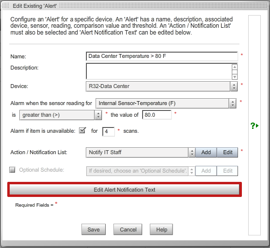 5. In the Edit Existing Alert window, select Edit Alert Notification Text.