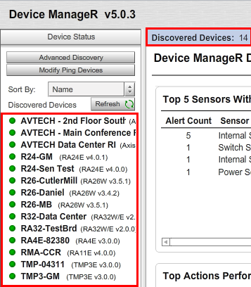 1. Like an Administrator, a Viewer can see all of the discovered devices on the network. In the example below, all 14 discovered devices appear under Device Status.