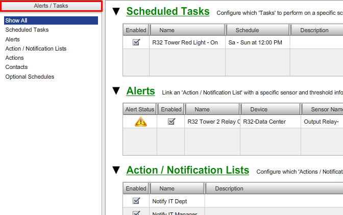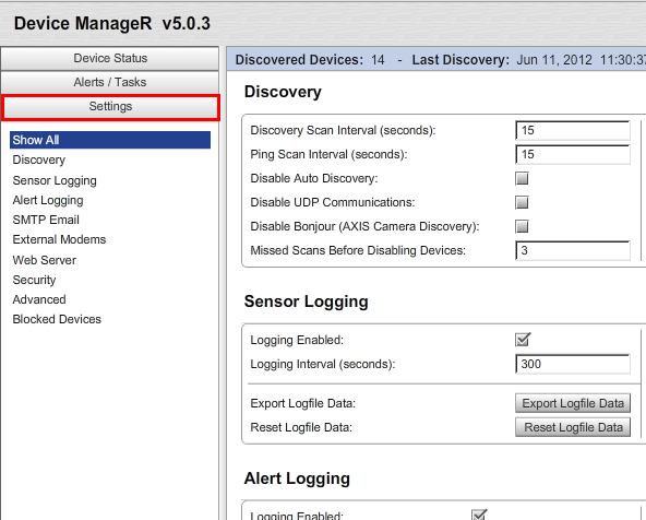 – It can see all discovered devices and configure all items in Alerts / Tasks and Settings.