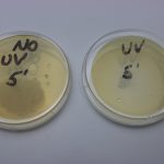 For the first in-house experiment, we used Petri dishes and UV light to see whether there was bacteria growth or a lack of bacteria growth based on Room Alert Mobile UV System exposure (photos below). For our set up we used cheek swabs to introduce standard bacteria to the Petri dishes. We then placed all but one of the Petri dishes at various distances from the Room Alert Mobile UV System unit, all in the same environment. Next, we exposed the Petri dishes to our UV-C light for 15 minutes. One Petri dish was our controlled variable, so it was not exposed to any UV-C light at all. The Petri dishes that were exposed to the appropriate amount of UV-C light at the standard recommended distances showed that there was no bacteria growth. However, the Petri dish that was not exposed to UV-C light did experience bacteria growth. From this, we were able to show that exposure to our Room Alert Mobile UV System prevented bacteria growth due to UV-C light exposure.