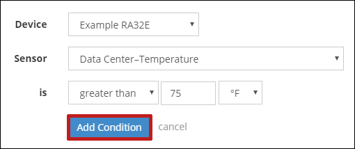 – In Sensor, select the sensor you’d like to add to your set. Here, we’re choosing Data Center North-Temperature.