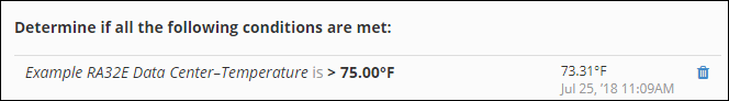 – In is, select your operator and enter a value. Here, we’re entering greater than 75º F.