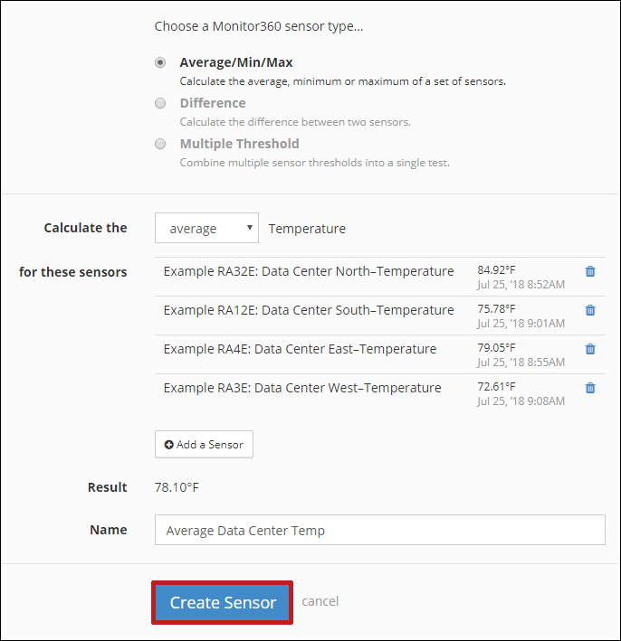 7. When you’re ready, name your sensor in Name. We’re calling ours “Average Data Center Temp.”