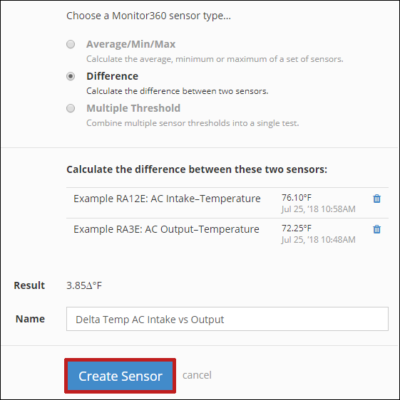 1. Under Choose a Monitor360 sensor type, select Difference.