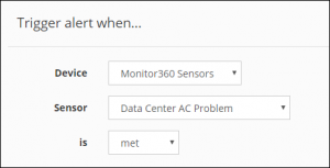 – In Device, select a Room Alert from the drop-down menu. In our example, we’re choosing Example RA32E.