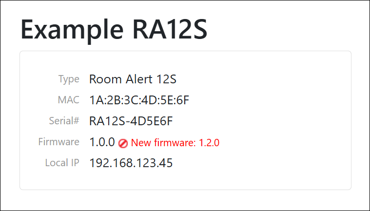 Your Room Alert Monitor’s current firmware version appears in several places: