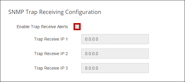 4. Under the heading, SNMP Trap Receiving Configuration, uncheck the box next to “Enable Trap Receive Alerts.”