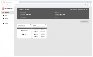Your Room Alert Monitor has a built-in web interface. This interface is separate from the web interfaces for RoomAlert.com and Room Alert Manager software. Below you see an example of each: