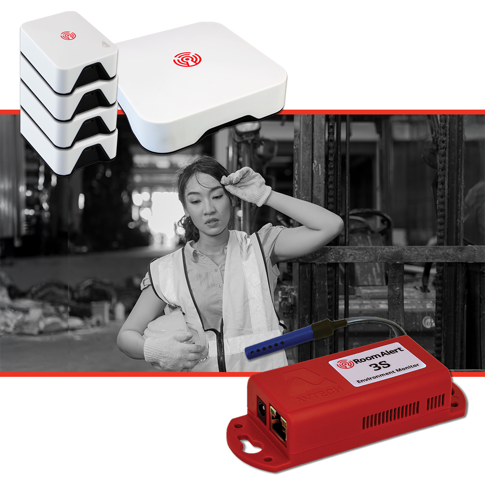The Room Alert PRO Heat Safety Monitor includes a Room Alert 3S and a Digital Temperature & Humidity Sensor (25′), making it perfect for facilities looking for a reliable, wired solution to protect equipment and personnel. The Room Alert MAX Heat Safety Monitor features a Room Alert MAX Base Station package and 3 additional wireless Temperature & Humidity Sensors, making it ideal for facilities of all sizes, manufacturing floors, warehouses and multi-zone operations. This wireless bundle allows users to deploy sensors wherever needed and communicate directly with the centralized Base Station.
