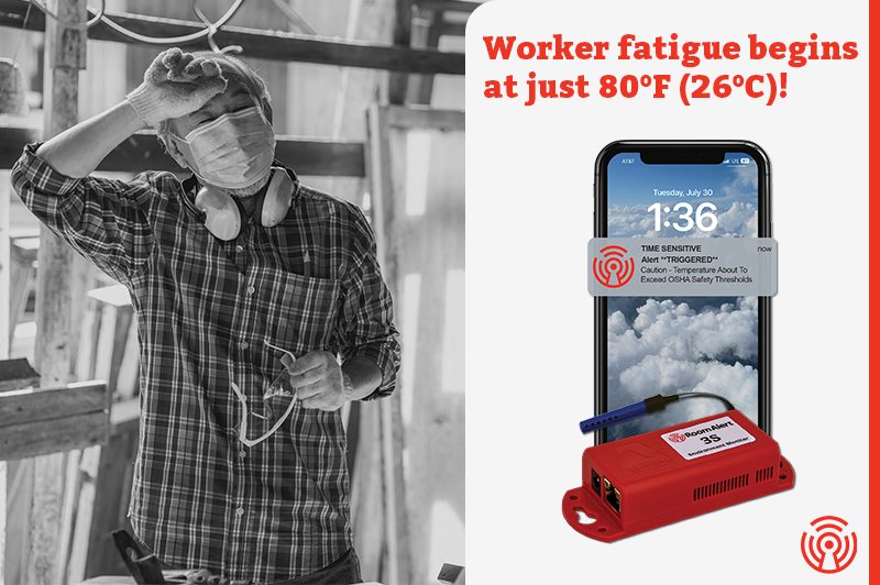 Get compliant in just a few clicks with fast and easy setup! Heat related workplace incidents are preventable, but only if you know conditions are becoming dangerous before it’s too late. Room Alert makes compliance effortless with quick setup, instant alerts and automated reporting that meets all regulatory requirements. At just 80°F (26°C), workers experience fatigue with prolonged exposure. Heat related illness costs employers billions of dollars annually through direct medical expenses, workers’ compensation claims, lost productivity and increased turnover rates.