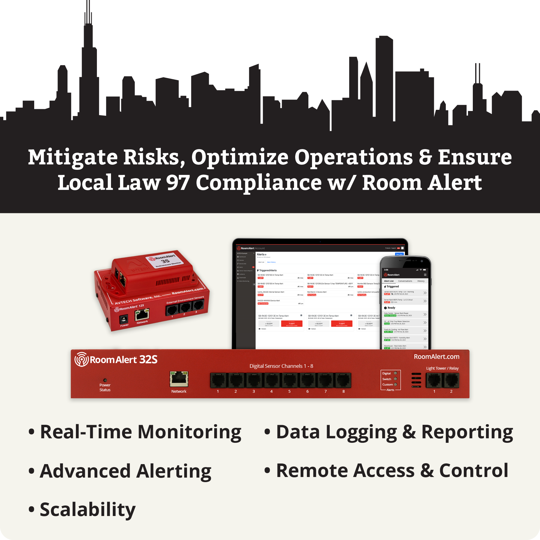 New York City’s Local Law 97 is a significant step towards a greener future, however it presents a complex challenge for building owners and facility managers. The law’s strict emissions standards and potential penalties necessitate a proactive approach to environmental monitoring and control. Room Alert, advanced & secure environment monitoring, offers a comprehensive solution to help navigate these challenges and ensure compliance.