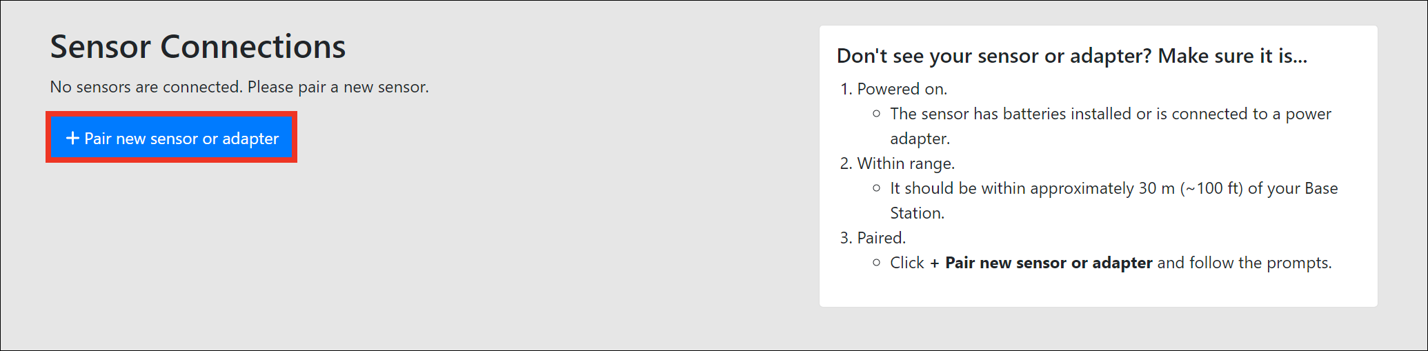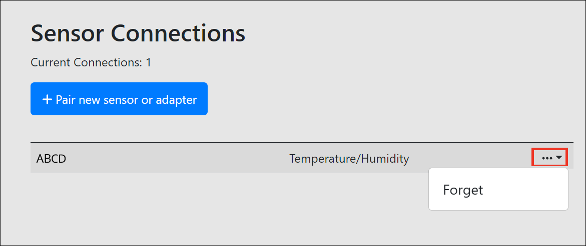 - Click the + Pair new sensor or adapter button.
