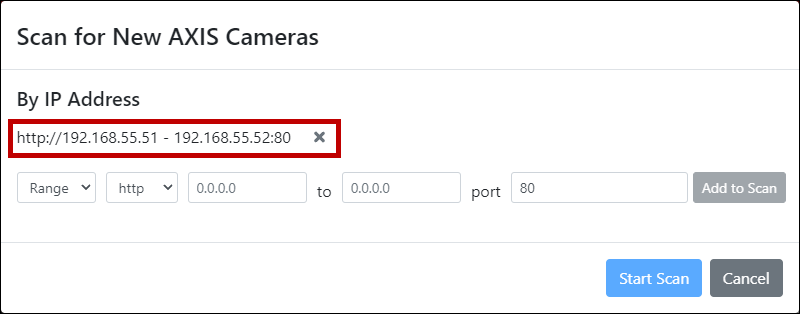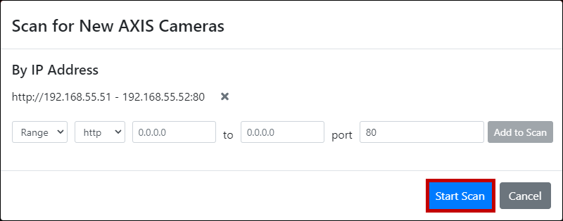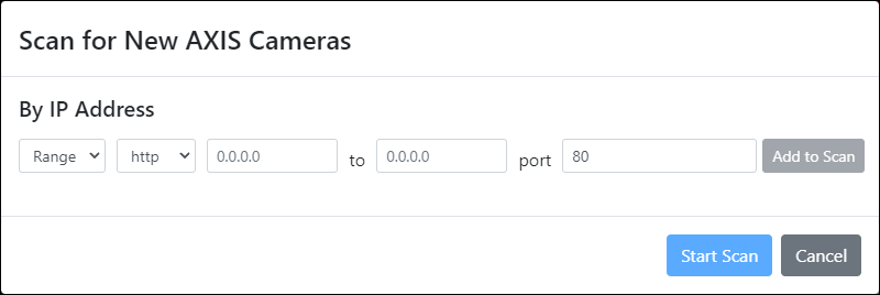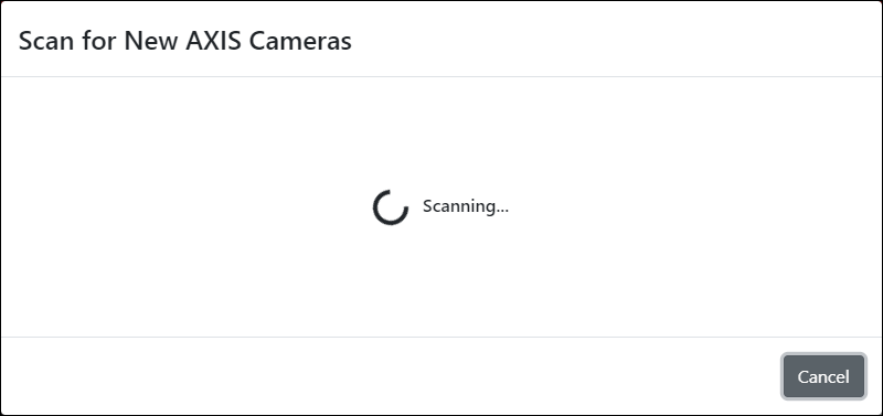 5. This opens the Scan for New AXIS Cameras window, shown below.