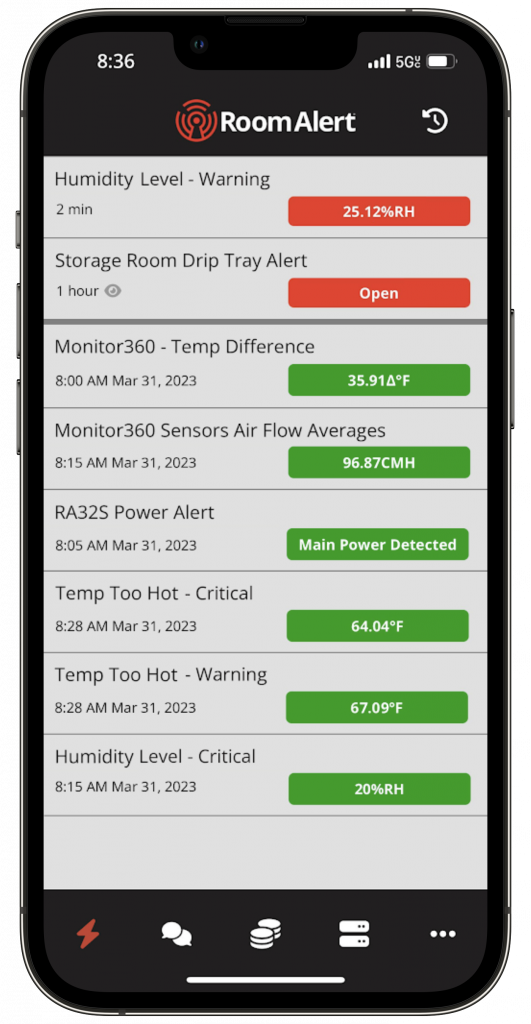 All you need to do is install the Room Alert Mobile App for iOS or Android. Once you’ve signed into your account through the app, you will automatically receive mobile push notifications for all alerts on your account. Learn more about how to manage these notifications and all the other features of our mobile app in our knowledge base