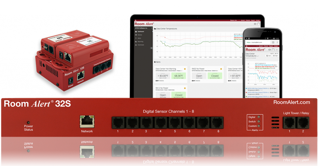 Our Room Alert product line offers monitors, sensors, accessories and online monitoring capabilities that provide a complete solution to preventing and minimizing environmental downtime. Room Alert is affordable, easy to install, reliable, fully TAA-compliant, and most importantly- the best environment monitoring solution available! Room Alert is made & supported in the USA, and is trusted by thousands of users such as all branches of the U.S. Government and Military and over 80% of the Fortune 1000. Room Alert is preventing costly downtime in data centers, warehouses, restaurants, medical labs and more in over 186 countries and even in outer space.