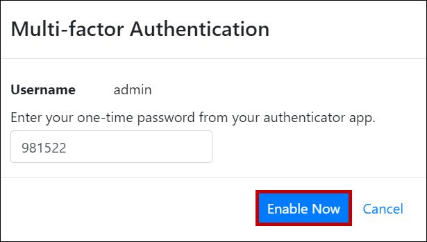 - Then enter your code and select Enable Now.