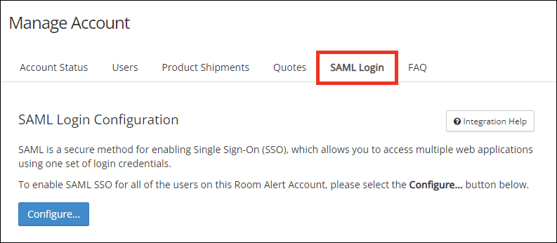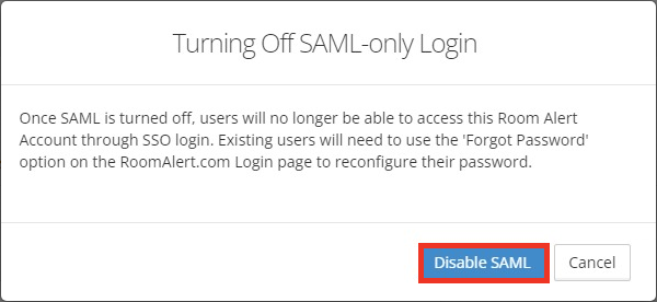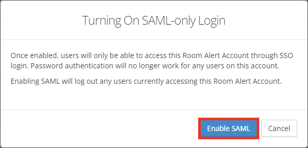 Step 1: Initiate the SAML Login Configuration in Room Alert Account.