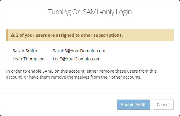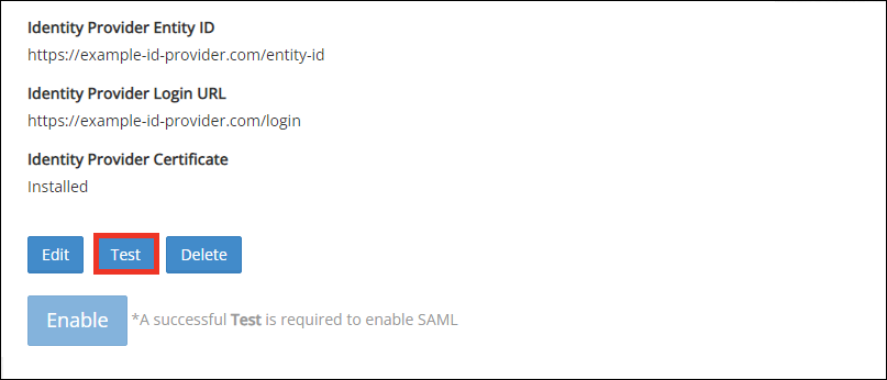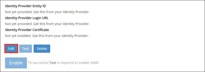 Saving these changes does NOT enable SAML SSO for the account. That’s done in a later step.
