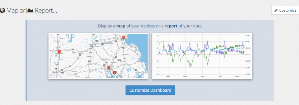 The second section you’ll see in your dashboard is dedicated to Maps or Reports. Reporting is an incredible feature for workers and managers who appreciate easy-to-read graphics that display the various conditions in their environment, such as temperature, humidity and so much more. Reporting offers custom report overlays and more.