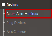 - In Room Alert Manager’s interface, navigate to Devices –> Room Alert Monitors.