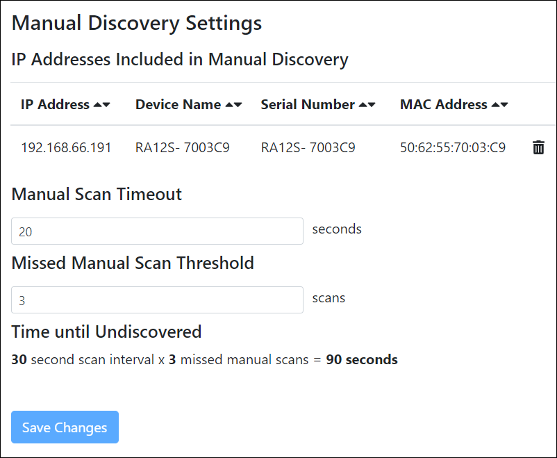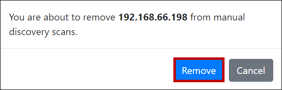 - Locate the device you wish to remove from the IP Addresses Included in Manual Discovery list.