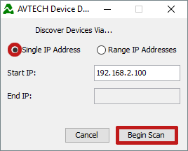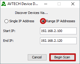 This FAQ shows you how to use Device Discovery to scan for your devices; please see our FAQ How To Discover AVTECH Devices With Device ManageR for information about Device ManageR.