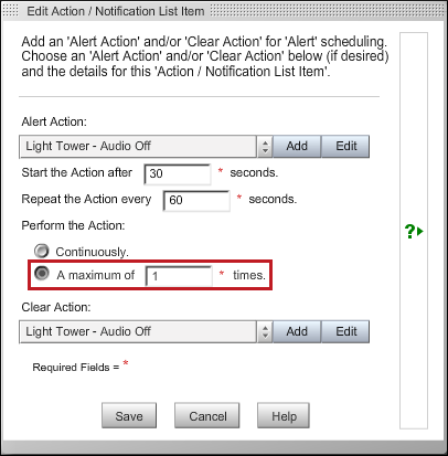 – Set your first Alert Action to Audio On. Have subsequent Alert Actions alternate between Audio Off and Audio On.
