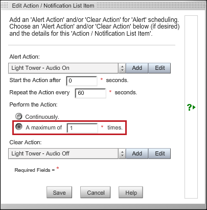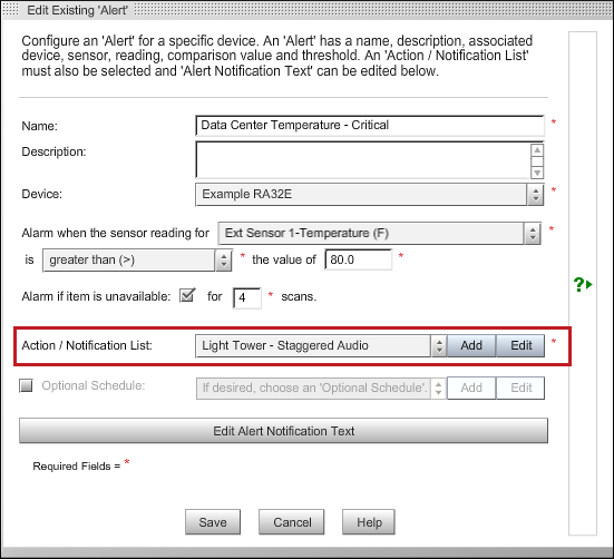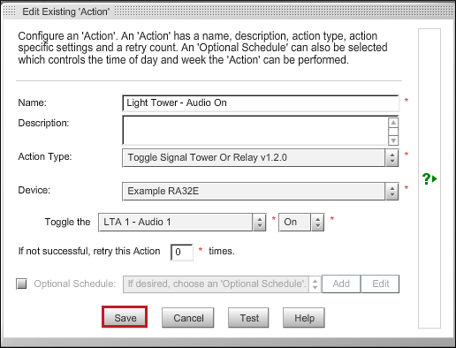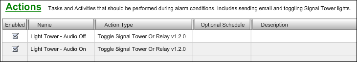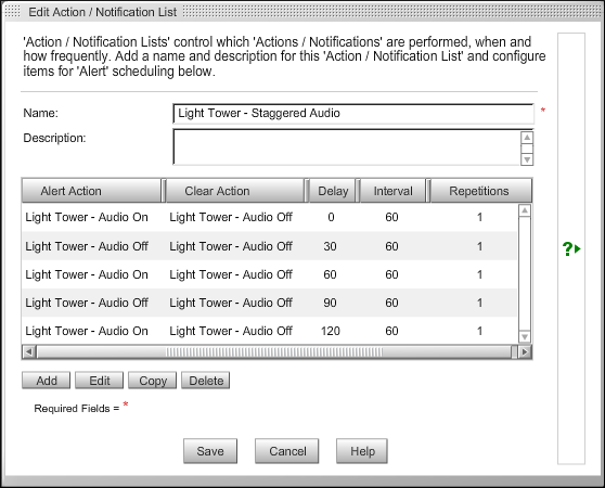 Our sample Action/Notification List, called Light Tower – Staggered Audio, does the following: