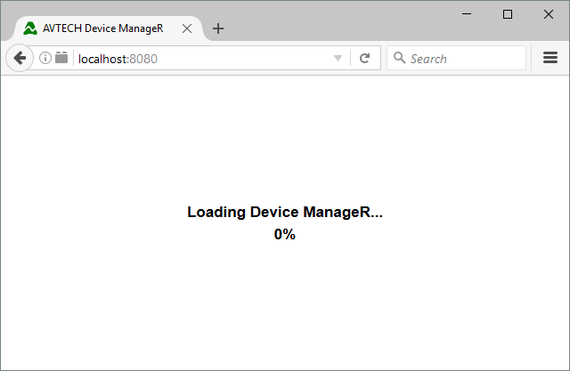 If you try to open Device ManageR in your web browser, you’ll likely see the page get stuck loading at 0%, as shown here.
