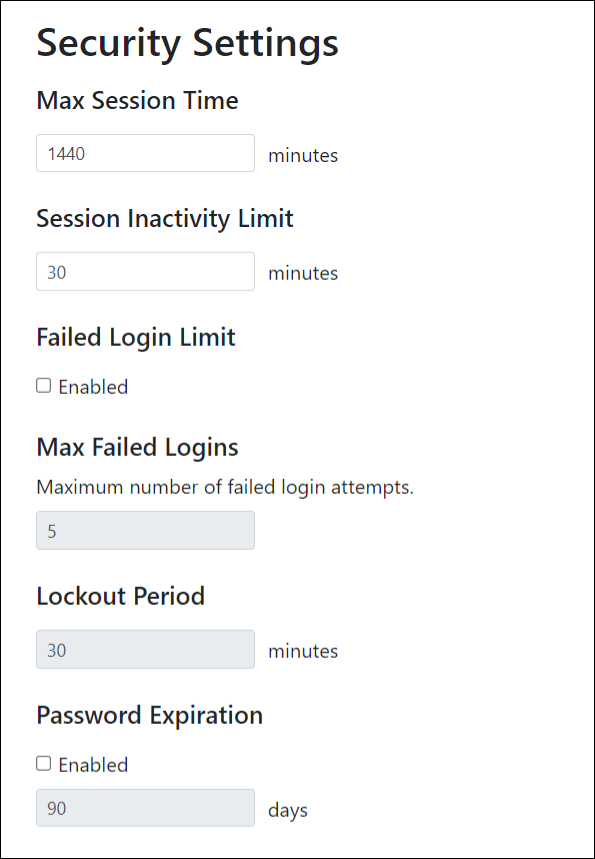 • In Lockout Period, enter the number of minutes that a user get locked out before they can attempt another login.