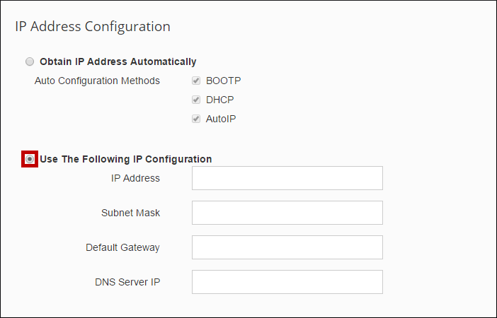 By default, your Room Alert Monitor obtains an IP address automatically using DHCP. You may set a static IP address, if you wish, through the device’s built-in web interface. To do so, follow the steps below: