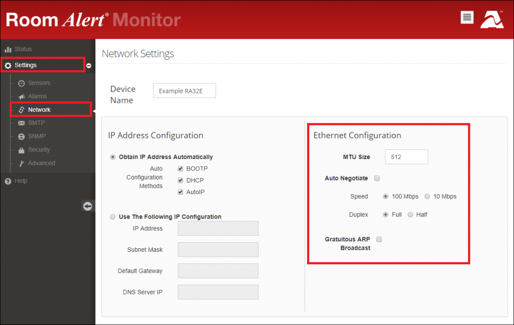 Depending on how your managed switch is configured, a Room Alert Monitor connected to it may periodically become inaccessible on your network. In some cases, the IP address of the unit still responds to pings, and, typically, power-cycling the unit resolves the issue temporarily.