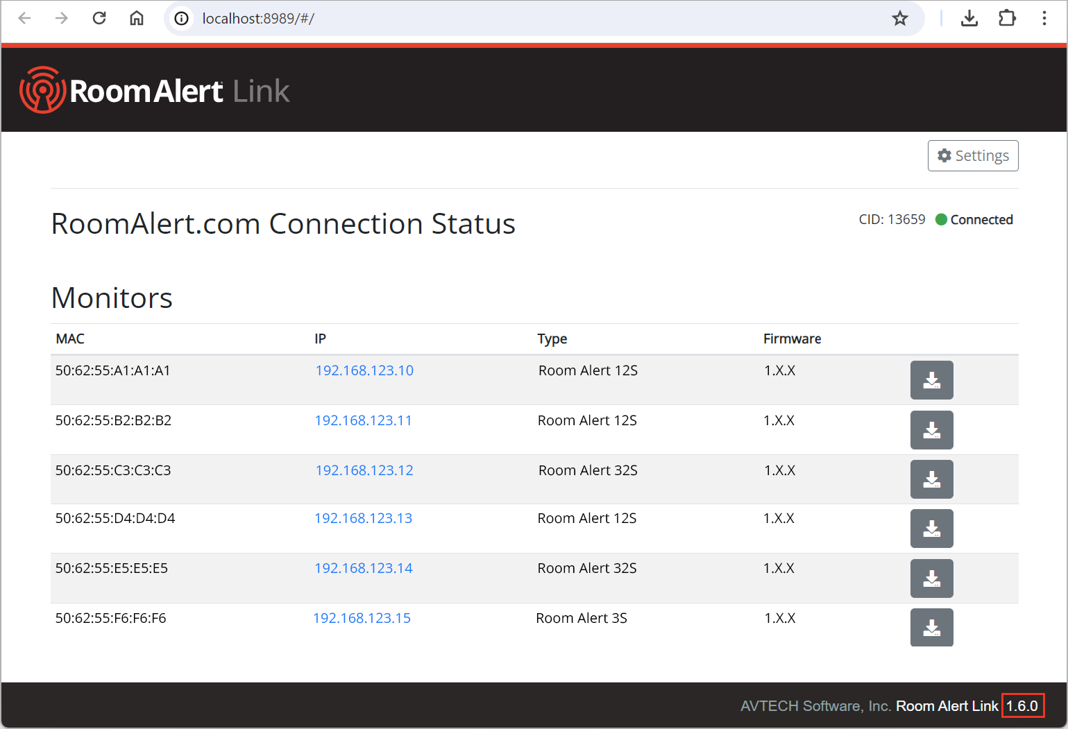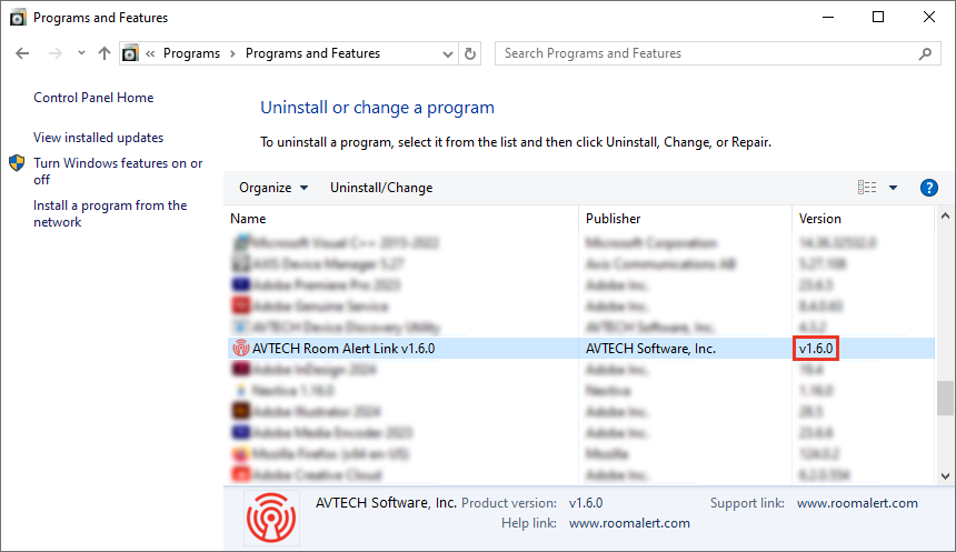 You may view Room Alert Link’s software version in the following places: