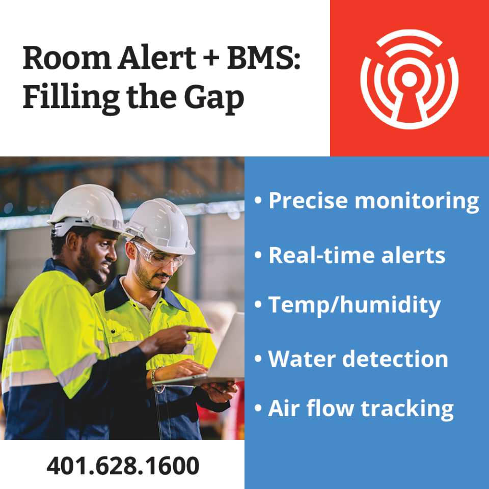Room Alert serves as the missing piece in building management, offering powerful environmental monitoring and alerting capabilities that fill gaps in a traditional BMS. Room Alert continuously monitors critical environmental factors such as temperature, humidity, heat index, power, air flow, water/flood and more to detect potential issues before they escalate. By adding Room Alert to a BMS, building managers gain detailed, real-time data that empowers them to prevent disruptions and improve building performance.