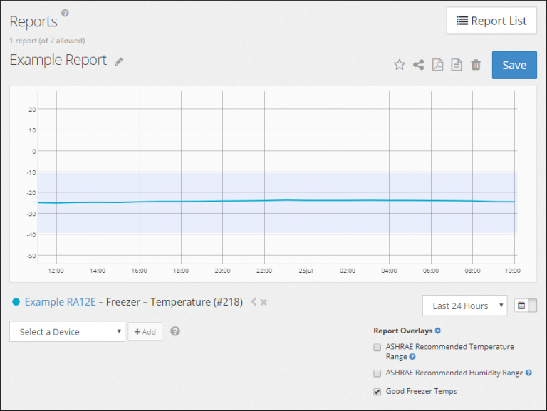 This feature makes it extremely easy for users to see, at a quick glance, how their sensor data compares to the recommendations made by ASHRAE. Report overlays help customers ensure that their data centers encourage optimal workplace conditions and maintain server and computer uptime.