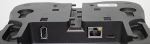 The cable management bay includes a PoE-enabled Ethernet (RJ-45) port, a USB-C 5V power port, and a USB-A peripheral port. Cables can be routed through channels on any of the Base Station's 4 sides as needed.