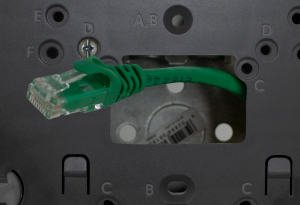 Cables can optionally be routed directly through the mounting plate into the wall or junction box behind it.