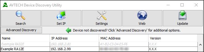 * Please note that the Room Alert 32S, 12S & 3S are not compatible with Device ManageR or the Device Discovery utility.