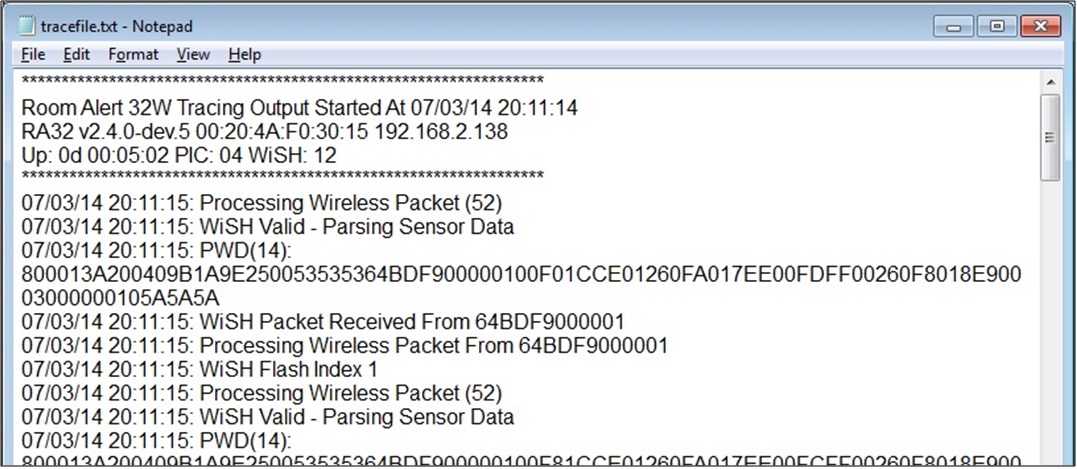 The tracing feature is a very useful tool that can be used to assist in troubleshooting issues with your Room Alert Monitor.