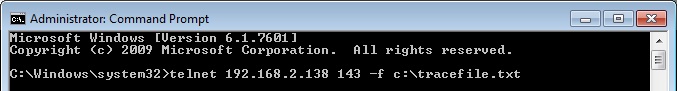 telnet <IP address of your Room Alert unit> <trace port number> -f c:\tracefile.txt