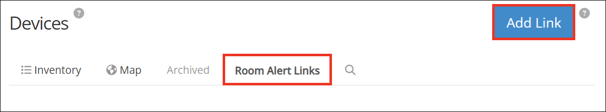 2. In the navigation bar to the left, select Devices, and go to the Room Alert Links tab.