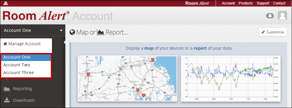 If you belong to more than 1 account in RoomAlert.com, you may switch between them by following these steps: