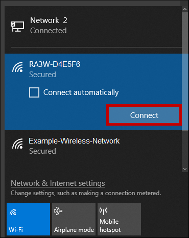 – Select your Room Alert 3 Wi-Fi’s name (3W-XXXXXX), and then select Connect.